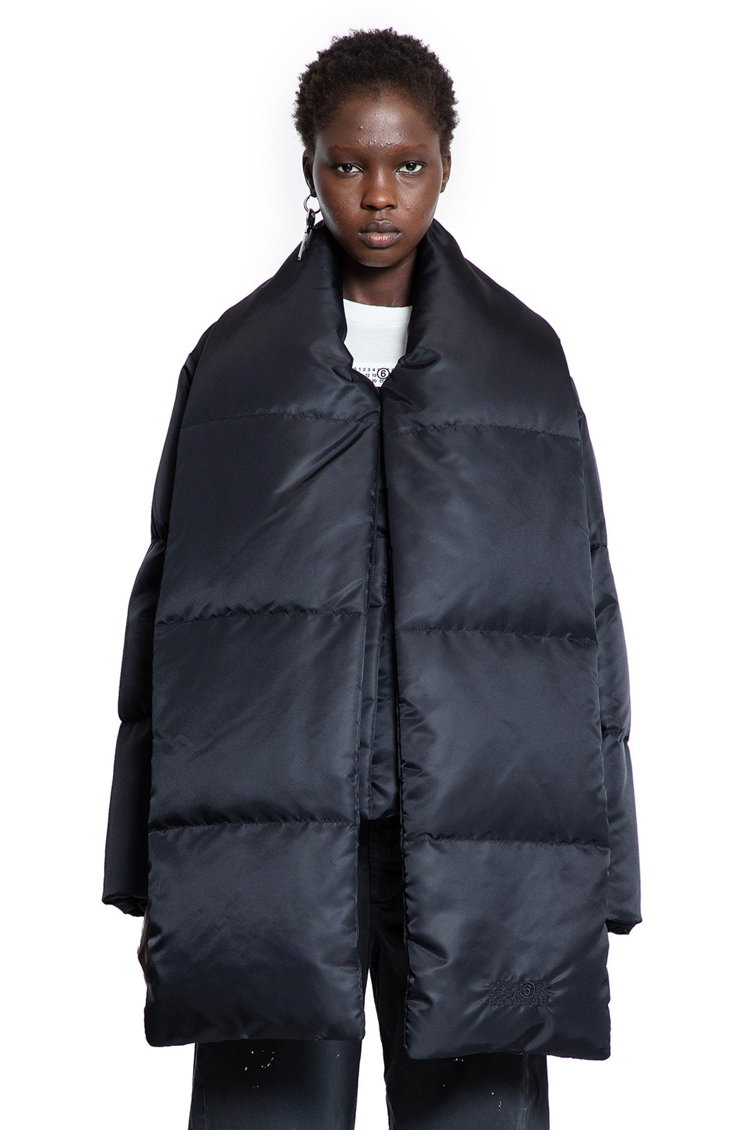 DESCRIPTION - Black - Padded quilting - Adjustable padded scarf - Concealed zip closure - Side zipped pockets - Drawstring waist - Boxy fit DETAILS - Made in: Italy - Composition: 100% Polyamide Padding: 90% Down 10% Feather - Model code: S52AM0332M35257 900 - Item ID: 9700187373910 SIZE & FIT Model wears size S Model Height 180 cm Bust 77 cm Waist 57 cm Hips 87 cm
