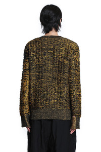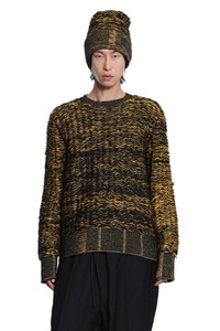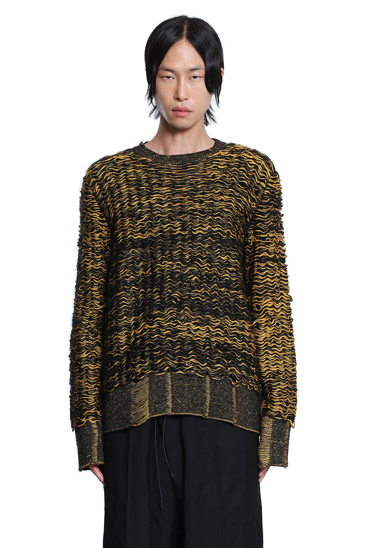 DESCRIPTION - Multicolor - Black/golden yellow - Two-tone ''tramato'' waved knit - Crewneck - Dropped shoulders - Back stitch moniker - Ribbed hem and cuffs DETAILS - Made in: Romania - Composition: 47% Acrylic 38% Virgin Wool 8% Polyamide 7% Mohair - Model code: SH0HL0031M13130 961 - Item ID: 9710590787926 SIZE & FIT Model wears size M Model Height 188 cm Chest 88 cm Waist 69 cm Hips 88 cm