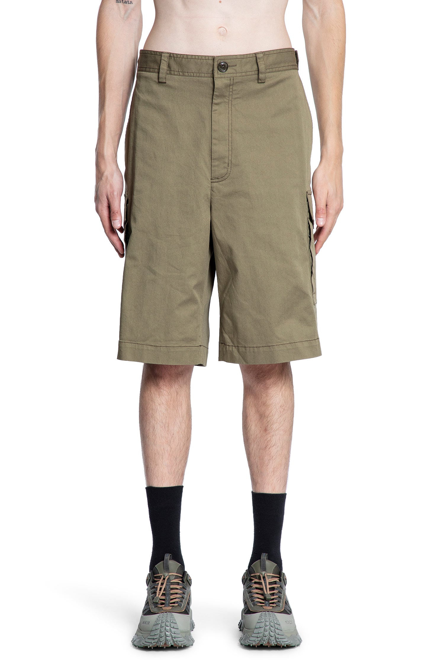 DESCRIPTION - Olive green - Comfort cotton gabardine - Belt holes - Press stud and zip closure - Side pockets - Press stud cargo pockets - Back felt logo patch - Back pockets - Relaxed fit DETAILS - Made in: Bulgaria - Composition: 98% Cotton 2% Elastane - Model code: 2B00004598QH 81M - Item ID: 9670850511190