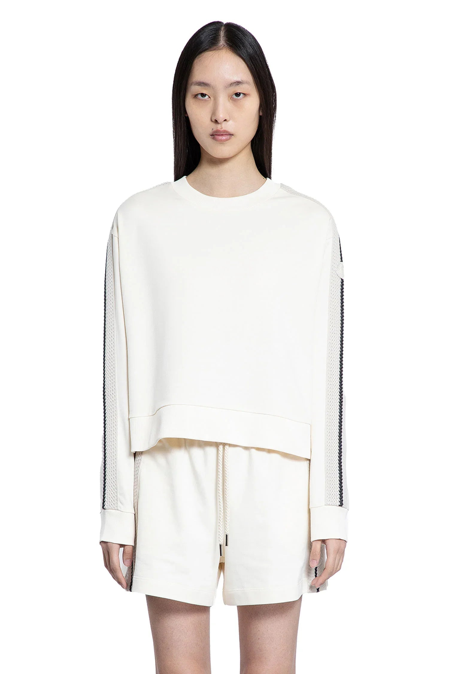 DESCRIPTION - Natural - Cotton jersey - Round neck - Sleeves knitted stripes - Dropped shoulders - Long sleeves - Sleeve logo patch - Ribbed hem and cuffs - Cropped DETAILS - Made in: Turkey - Composition: 100% Cotton - Model code: 8G0003389A1K 034 - Item ID: 9502212686166 SIZE & FIT Model wears size S Model Height 177 cm Bust 76 cm Waist 63cm Hips 89 cm