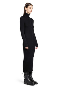 DESCRIPTION - This Wool Turtleneck Dress, created in collaboration with EE72 by Edward Enninful, reflects refined minimalism and sensual structure. Crafted from black merino wool ribbed knit, it features a sleek turtleneck, press-stud closure, and long sleeves detailed with a sleeve rubber logo patch. With its slim fit, it exudes the sophisticated balance of elegance and modern luxury. DETAILS - Made in: Italy - Composition: 100% Virgin Wool - Model code: 9L00001M1131 999 - Item ID: 9896772305238
