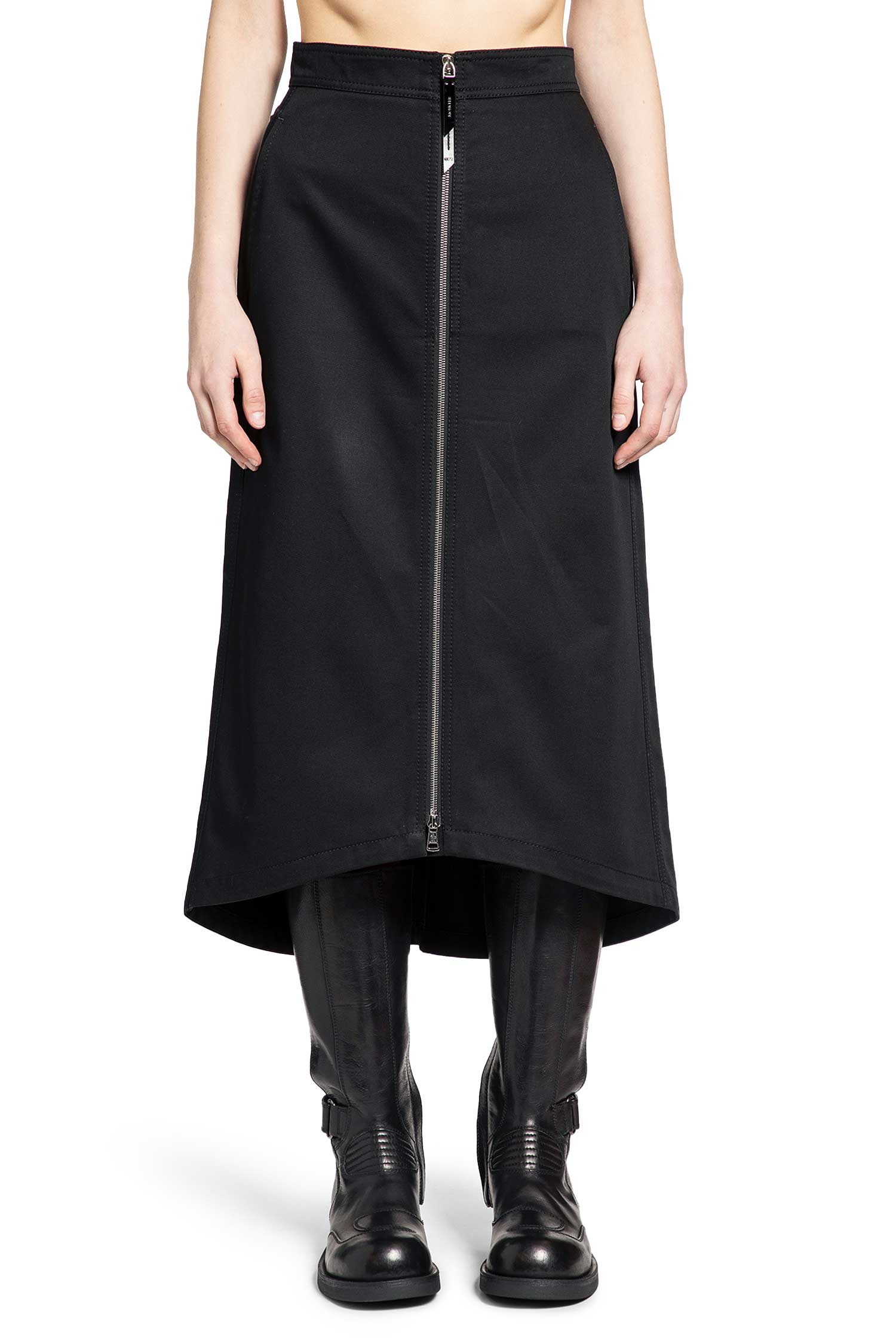 DESCRIPTION - In the Fall Winter 2025 collection, this Cotton Gabardine Midi Skirt, designed in collaboration with EE72 by Edward Enninful, embodies sophisticated structure and modern utility. Crafted from black cotton gabardine, it features a high-waisted silhouette with a striking front zipped split and practical side pockets. Detailed with a back rubber collaboration logo patch, dropped back, and flared cut, it captures the refined innovation and timeless allure of contemporary luxury. DETAILS - Made in: Romania - Composition: 100% Cotton - Model code: 2D00006M6582 999 - Item ID: 9896771912022