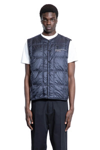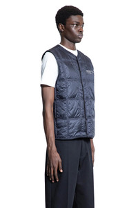 DESCRIPTION - In collaboration with FRGMT - Navy - Reversible - Longue saison nylon - Padded quilting - Round neck - Press stud closure - Chest frgmt embroidery - Side pockets - Sleeveless - Elasticated armholes - Back frgmt embroidery and moncler logo patch - Elasticated hem - Reverse: - Nylon laque padded quilting with front logo patches - Packable - Slim fit DETAILS - Made in: Romania - Composition: 100% Polyamide Padding: 90% Down 10% Feather - Model code: 1A00016M6114 742 - Item ID: 9478335430998