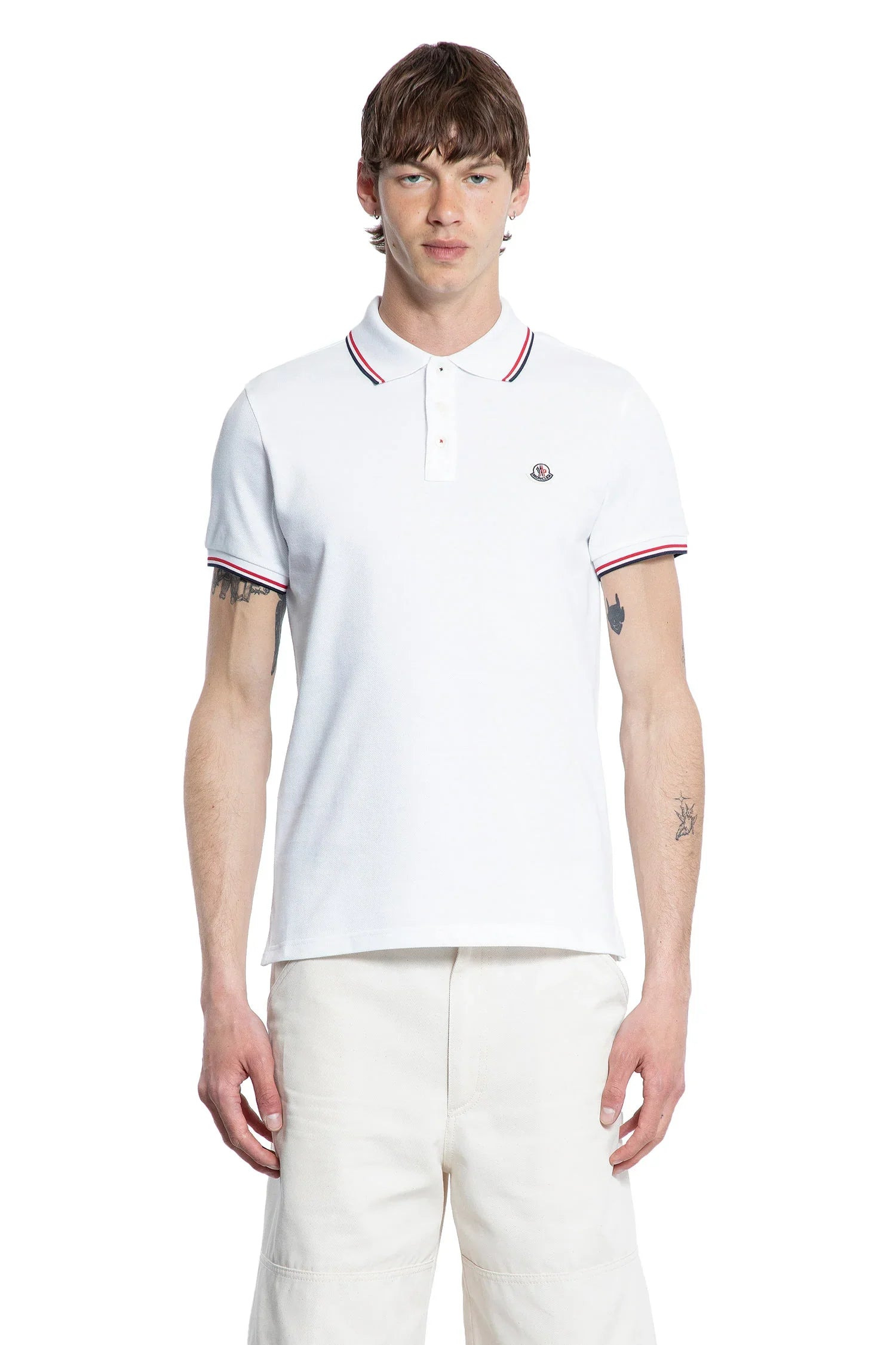 DESCRIPTION - White - Collar - Quarter-button closure - Short sleeves - Chest logo patch - Tri-colored trims DETAILS - Made in: Turkey - Composition: 100% Cotton - Model code: 8A7030084556 001 - Item ID: 8466538135894 SIZE & FIT Model wears size S Model Height 187 cm Chest 92 cm Waist 72 cm Hips 89 cm