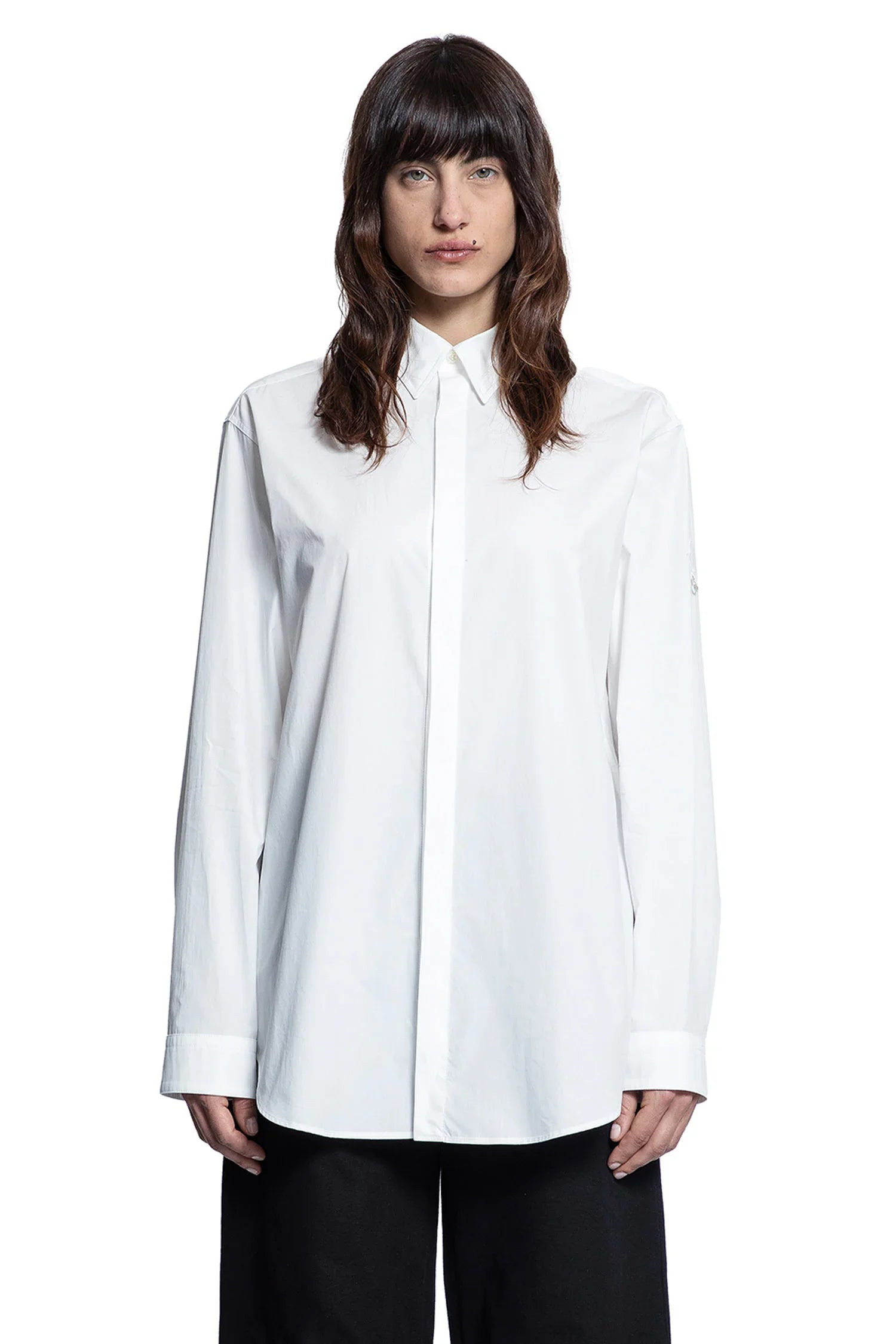 DESCRIPTION - In collaboration with willow smith - White - Cotton poplin - Classic collar - Layered concealed button closure - Dropped shoulders - Long sleeves - Back pleats - Curved hem - Oversized fit DETAILS - Made in: Romania - Composition: 100% Cotton - Model code: 2F00001M5316 032 - Item ID: 9308727542102 SIZE & FIT Model wears size 40 Model Height 175 cm Bust 82 cm Waist 68 cm Hips 93 cm