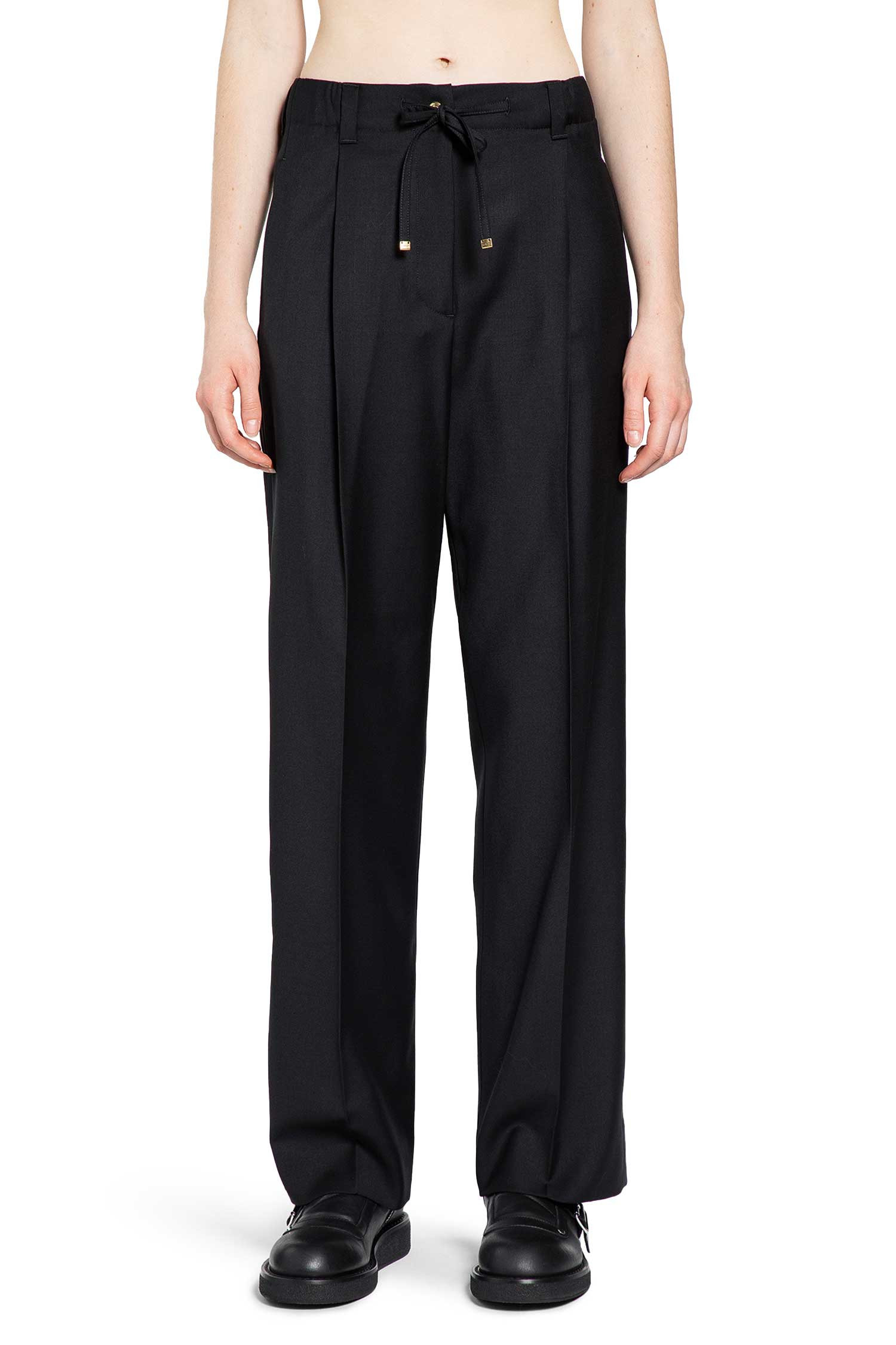 DESCRIPTION - Black - Wool twill - Belt holes - Button closure - Drawstring waist - Leg crease - Side pockets - Back pockets - Straight leg DETAILS - Made in: Romania - Composition: 100% Virgin Wool - Model code: 2A00018598XP 999 - Item ID: 9875347472726