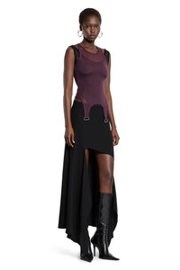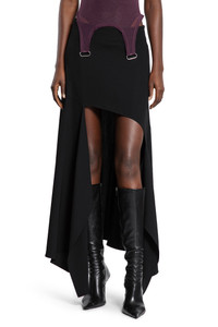DESCRIPTION - Black - Wool twill - Hight waisted - Asymmetric style - Side concealed zip closure DETAILS - Made in: Bulgaria - Composition: 78% Viscose 22% Virgin Wool - Model code: 25F1JU0573196 1999 - Item ID: 9741112082774 SIZE & FIT Model wears size 38 Model Height 177 cm Bust 74 cm Waist 58 cm Hips 85 cm