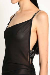 DESCRIPTION - Black - Sheer viscose - Asymmetric square neckline - Adjustable shoulder straps - Side ruched gathering - Open back - Sleeveless - Draped - Slim fit DETAILS - Made in: Portugal - Composition: 100% Viscose - Model code: 25F3RO16986011 1999 - Item ID: 9854329979222 SIZE & FIT Model wears size 38 Model Height 177 cm Bust 76 cm Waist 58 cm Hips 86 cm