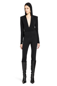 DESCRIPTION - Black - Boned thick rib stretch viscose nylon jersey - Elastic waistband - Stirrup hems - Fitted DETAILS - Made in: China - Composition: 86% Viscose 10% Polyamide 4% Elastane - Model code: 25F3PA05116027 1999 - Item ID: 9828525703510 SIZE & FIT Model wears size S Model Height 177 cm Bust 76 cm Waist 58 cm Hips 86 cm