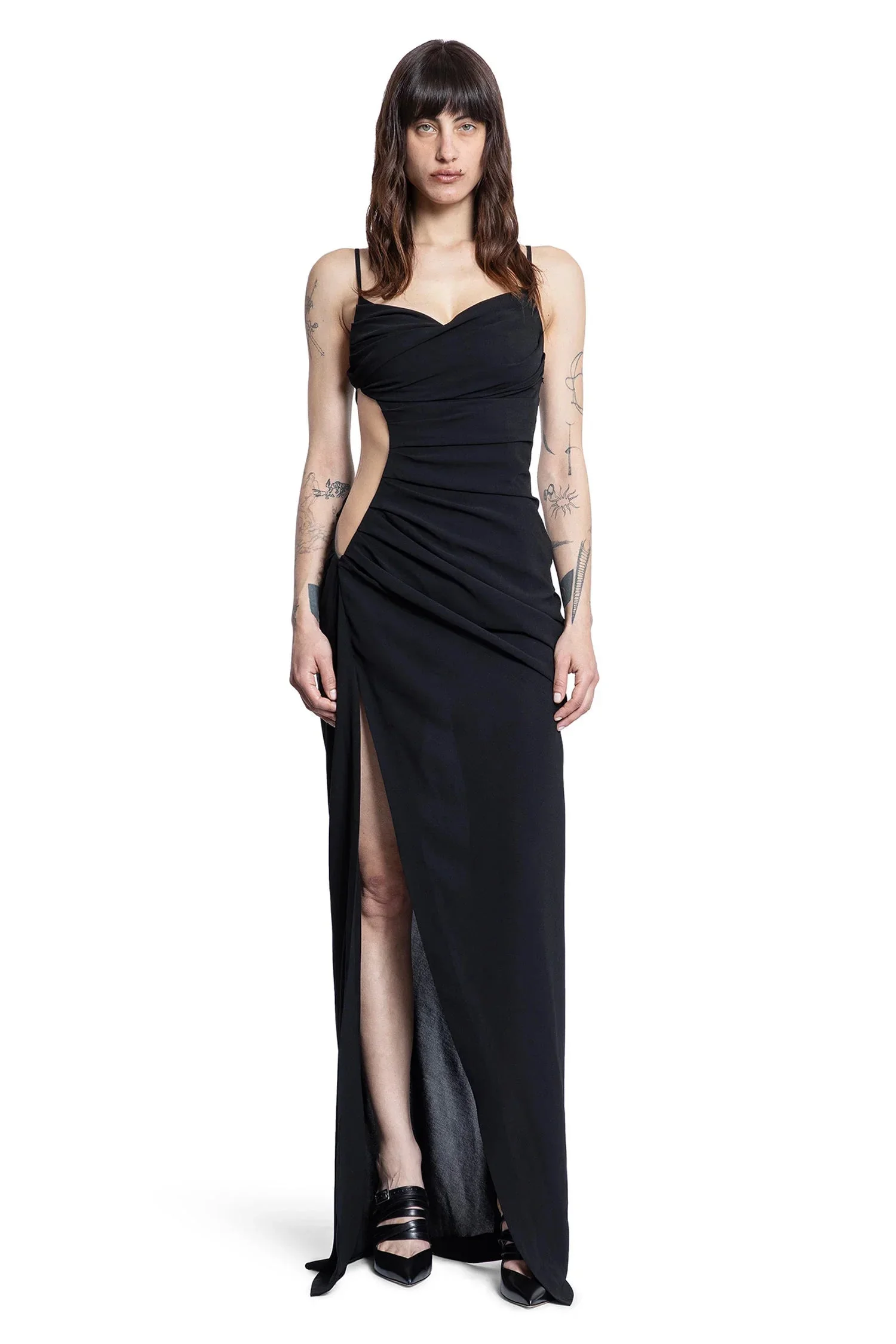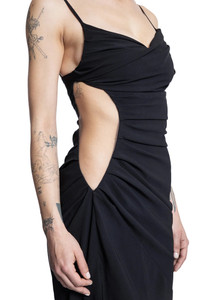 DESCRIPTION - Black - V-neck - Sleeveless - Draped front - Side cut-out - Side split - Side concealed zip closure - Length floor - Fitted DETAILS - Made in: Slovakia - Composition: 100% Polyester - Model code: 25P1RO1705369 19991 - Item ID: 9398258270550 SIZE & FIT Model wears size 38 Model Height 175 cm Bust 82 cm Waist 68 cm Hips 93 cm