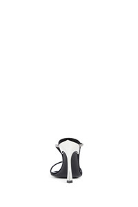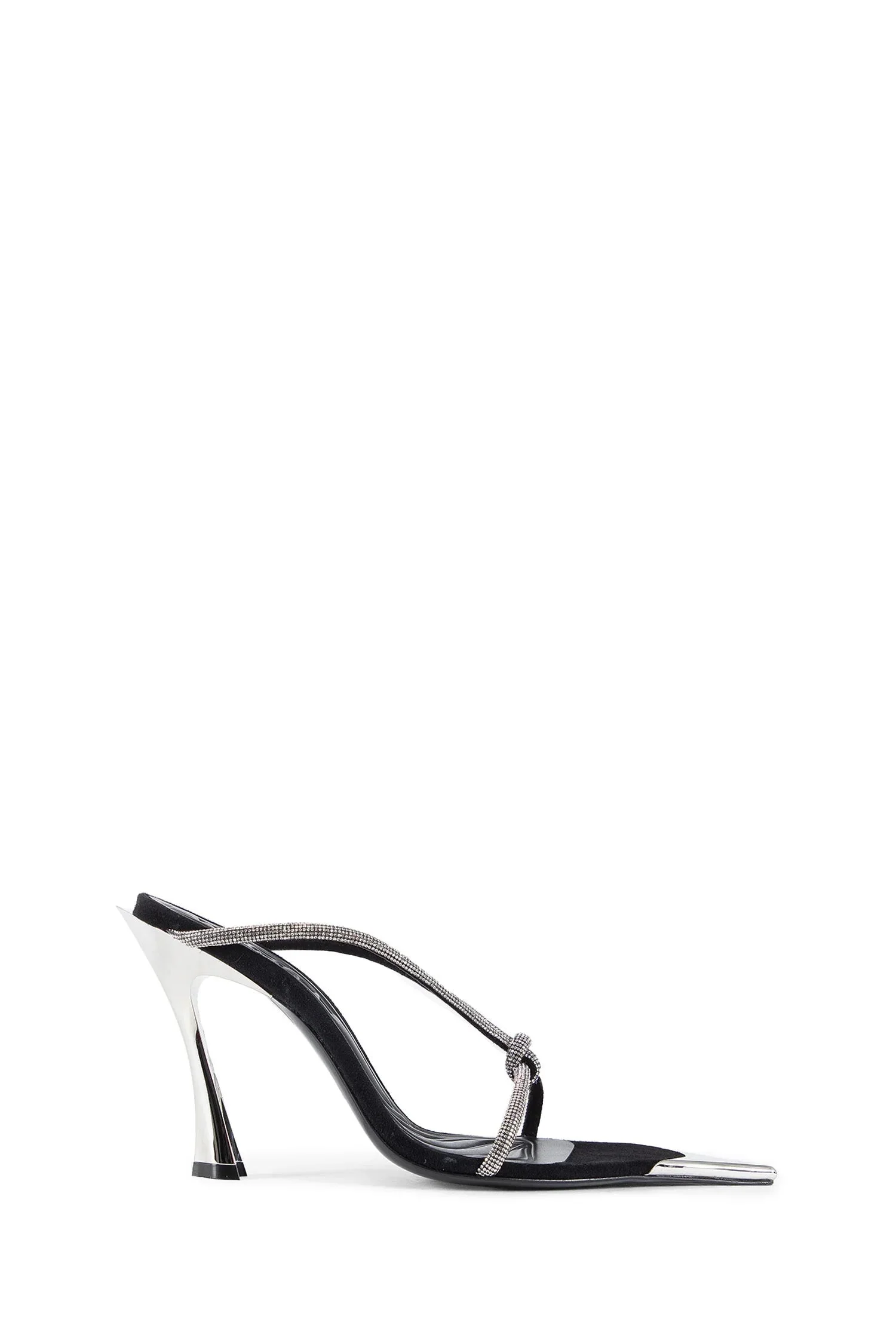 DESCRIPTION - Black - Pointed toe - Knotted webbing strap with rhinestones - Metal fang stiletto heel - Leather sole DETAILS - Made in: Italy - Composition: 100% Goatskin - Model code: MUWSS25SC141 SS015 - Item ID: 9427841024342