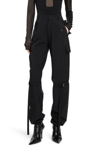DESCRIPTION - Black - Virgin wool blend - Belt loops - Two side flap pockets - Two side cargo pockets - Hook and zip fly closure - Built-in kneepads - Adjustable straps - Elasticated ankles - Tapered leg DETAILS - Made in: Albania - Composition: 43% Virgin Wool 53% Polyester 4% Elastane - Model code: NDAW24TRS058 BLACK - Item ID: 9800486256982 SIZE & FIT Model wears size XS Model Height 178 cm Bust 85 cm Waist 60 cm Hips 90 cm