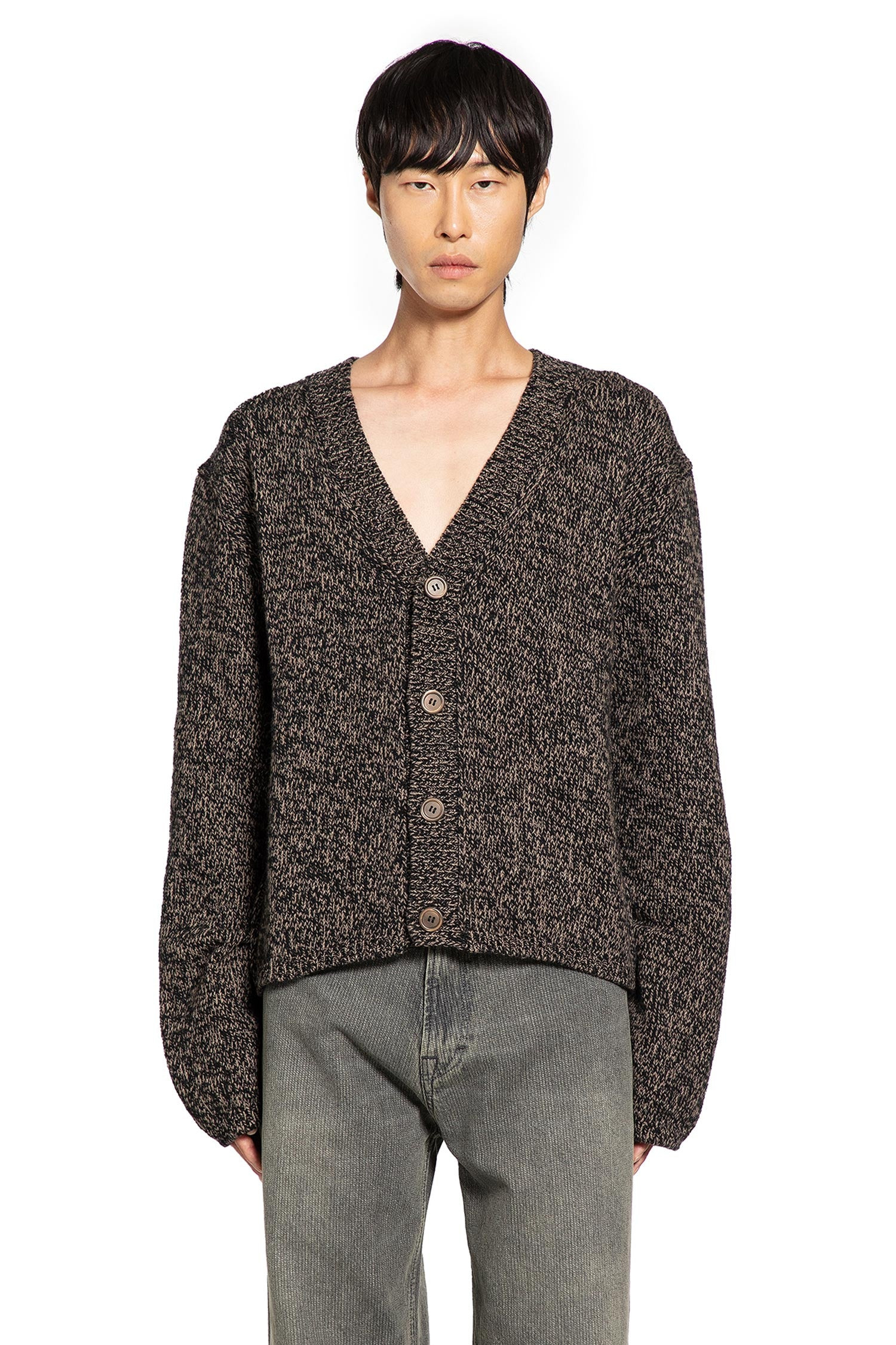 DESCRIPTION - Brown - Bear Twist Mouline Wool - V-neck - Button closure - Dropped shoulders - Ribbed hem and cuffs - Relaxed boxy fit DETAILS - Made in: Portugal - Composition: 100% Cotton - Model code: M4253AB BROWN - Item ID: 9815505895766