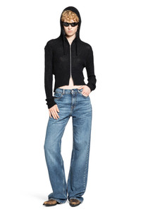 DESCRIPTION - Black - Fuzzy Alpaca knit - Hood with drawstrings - Zip closure - Cropped hem - Slim boxy fit DETAILS - Made in: Portugal - Composition: 55% Alpaca 15% Wool 30% Polyamide - Model code: W4243CB BLACK - Item ID: 9828523802966 SIZE & FIT Model wears size 38 Model Height 180 cm Bust 82 cm Waist 58 cm Hips 90 cm