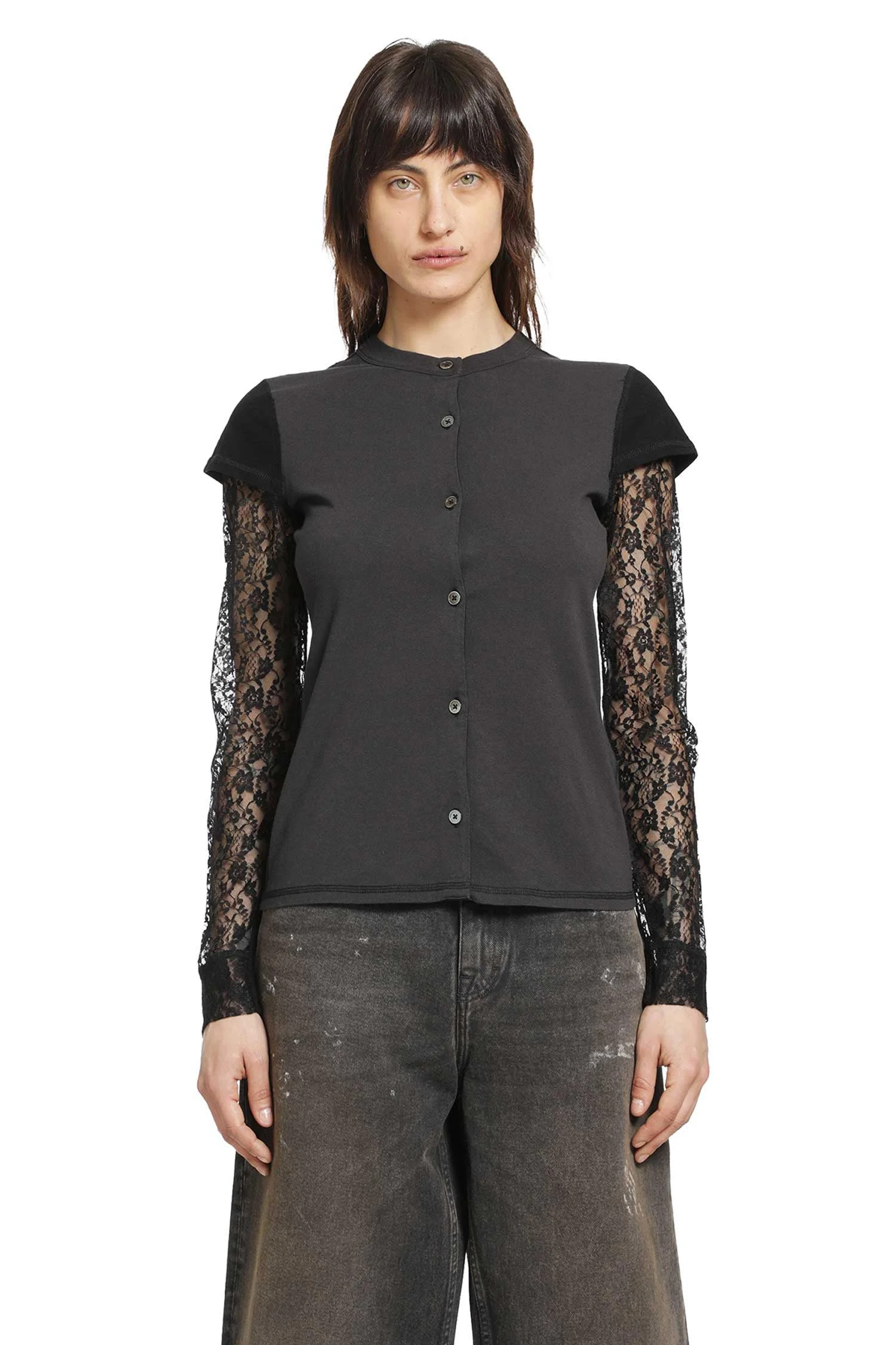 Details · Portuguese fabric · 100% Cotton · Piece dyed · Floral pattern · Layered construction · Mother of pearl buttons · Ribbed collar and cuffs · Straight hem · Slim fit · W2266HW Description Our Heat Longsleeve in Washed Black Legacy Jersey. Produced in a Portuguese cotton jersey, the Heat Longsleeve has a slim fit and features a layered construction with a floral pattern, mother of pearl buttons, a ribbed collar and cuffs, and a straight hem, and is piece dyed for a lived-in washed black tone. This garment is manufactured using carefully sourced material with a unique treatment process that will give each garment an individual shade and appearance. This technique could result in some color bleed onto lighter garments or surfaces. The garment shall be shaped by its wearer and naturally distress over time to finish the design process.