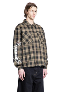 DESCRIPTION - In collaboration with metallica - Tobacco - Cotton lyocell flannel check - Classic collar - Button closure - Chest pockets - Dropped shoulders - Long sleeves - Sleeves and back metallica logo prints - Buttoned cuffs DETAILS - Composition: 59% Cotton 41% Lyocell - Model code: MLM248 289 - Item ID: 9434771882326 SIZE & FIT Model wears size S Model Height 188 cm Chest 88 cm Waist 69 cm Hips 88 cm