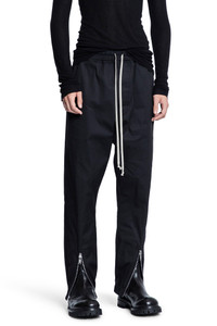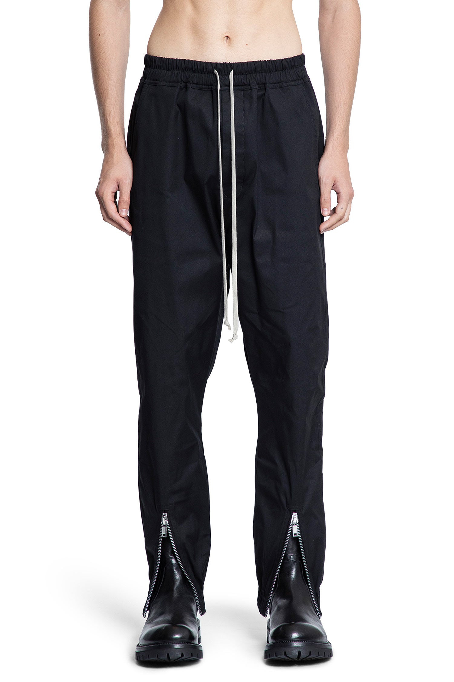 DESCRIPTION - Black - Heavy cotton poplin - Elastic waistband with drawstrings - Slightly dropped crotch - Side zipped pockets - Press stud back pockets - Elasticated hems DETAILS - Made in: Italy - Composition: 97% Cotton 3% Elastane - Model code: RU02E1331TE 09 - Item ID: 9677928071510 SIZE & FIT Model wears size 46 Model Height 186 cm Chest 89 cm Waist 72 cm Hips 90 cm