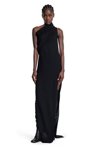 DESCRIPTION - Black - New wool - Off-the-shoulder ruched neckline - Side splits - Tapered fit - Floor length DETAILS - Made in: Italy - Composition: 100% Wool - Model code: RP02E4509WA 09 - Item ID: 9668721213782 SIZE & FIT Model wears size 38 Model Height 176 cm Bust 77 cm Waist 60 cm Hips 87 cm