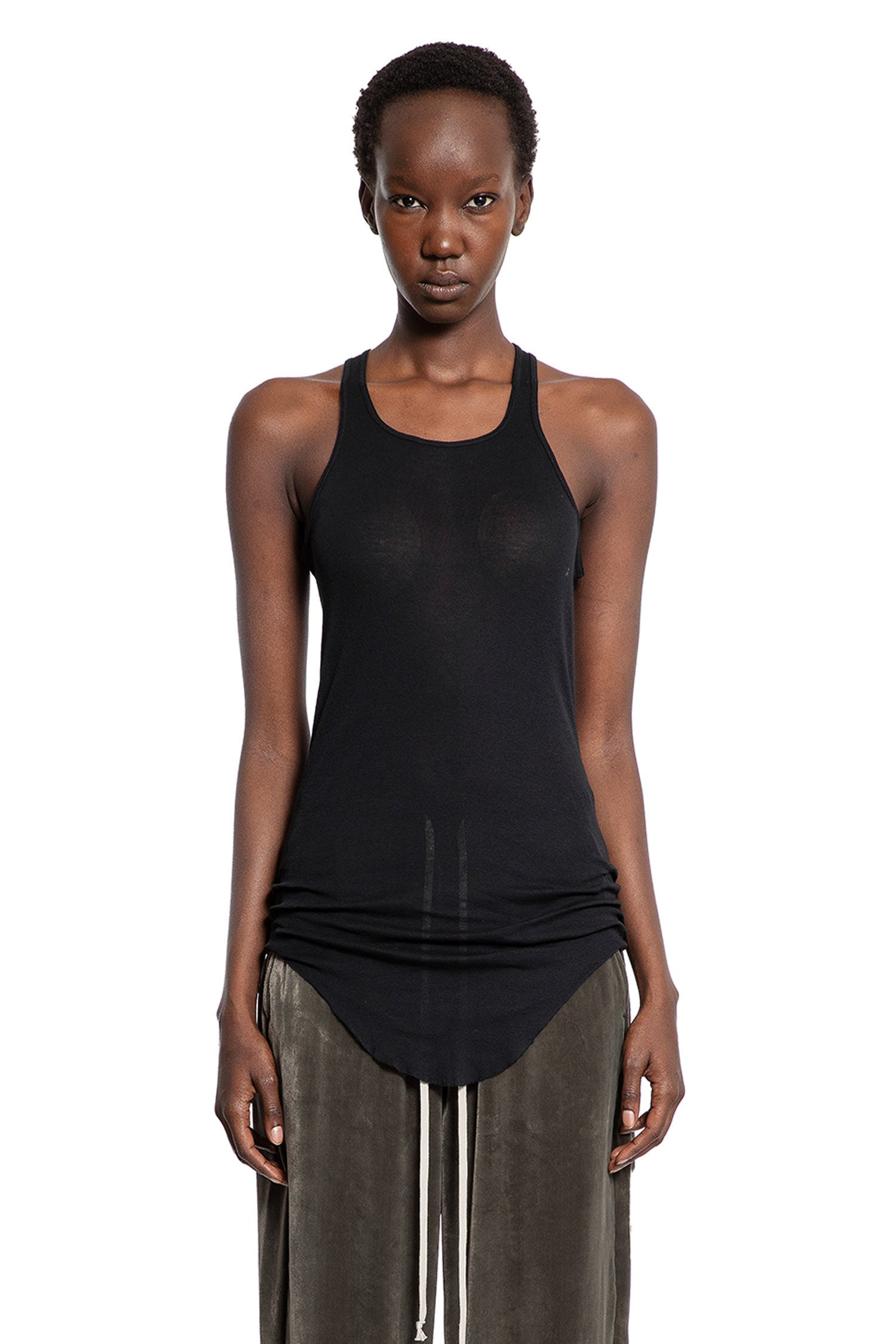 DESCRIPTION - Black - Mini rib jersey - Scoop neck - Sleeveless - Back signature seam - Racer back - Curved raw-edge hem - Fitted DETAILS - Made in: Italy - Composition: 100% Cotton - Model code: RP02E4101MR 09 - Item ID: 9744385016150