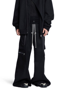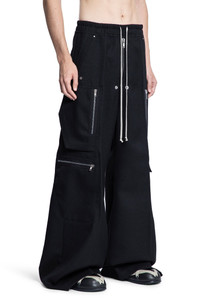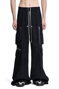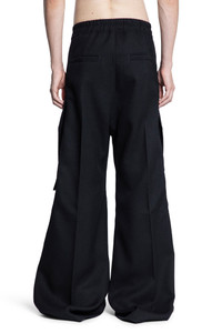 DESCRIPTION - Black - Elastic waistband with drawstings - Front exposed press stud and zip clposurer - Drop crotch - Side pockets - Side zipped cargo pockets - Asymmetric cargo poockets - Back pockets - Wide leg - Floor length DETAILS - Made in: Italy - Composition: 100% Wool - Model code: RU02E1339WDET1 09 - Item ID: 9677931807062 SIZE & FIT Model wears size 46 Model Height 186 cm Chest 89 cm Waist 72 cm Hips 90 cm