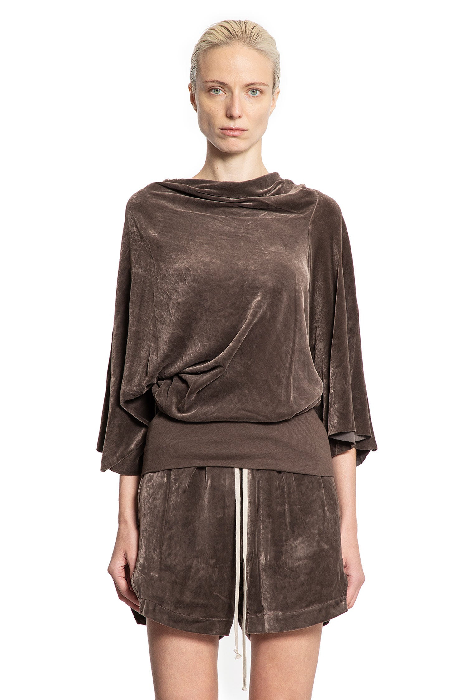 DESCRIPTION - Darkdust - Velvet - Draped cowl neck - Bias cut - Elbow-length sleeves - Fitted waistband - Draped DETAILS - Made in: Italy - Composition: 82% Viscose 18% Silk - Model code: RP02E4231V 78 - Item ID: 9719752655190 SIZE & FIT Model wears size 38 Model Height 180 cm Bust 80 cm Waist 59 cm Hips 89 cm