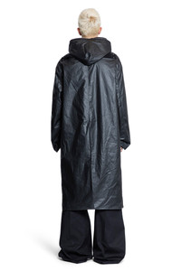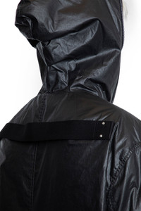 DESCRIPTION - Runway style - Black - Fixed hood - Full-length zip closure - Back cotton webbing strap with rivets - Back split - Zipped hood trim allows it to be zipped - completely over the face and turned into a - balaclava with four metal eyeleys amd eye slits DETAILS - Made in: Italy - Composition: 97% Cotton 3% Polyurethane - Model code: RU02E1979PCT 09 - Item ID: 9666219409750