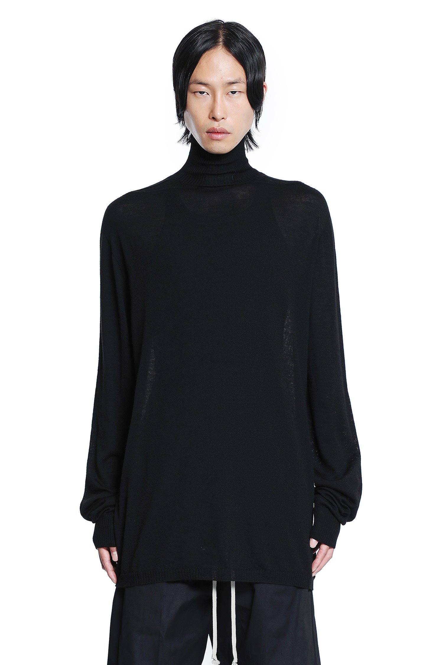 DESCRIPTION - Black - Wool knit - Turtleneck - Horizontal shoulder seams - Dropped shoulders - Back knit line - Ribbed hem and cuffs - Loose fit DETAILS - Made in: Italy - Composition: 100% Wool - Model code: RU02E1626M 09 - Item ID: 9710581121366 SIZE & FIT Model wears size M Model Height 188 cm Chest 88 cm Waist 69 cm Hips 88 cm