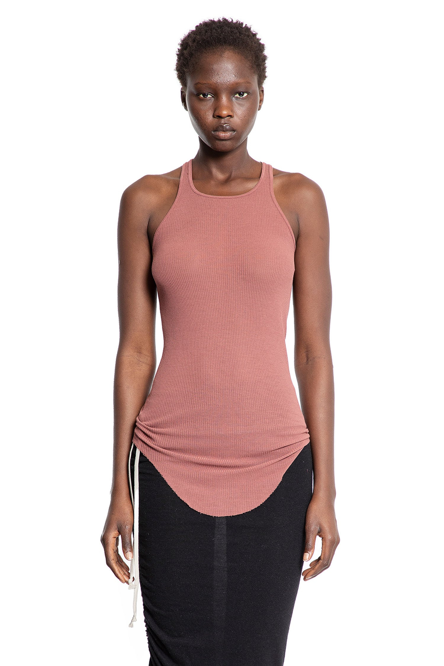 DESCRIPTION - Rosewood - Viscose silk rib jersey - Scoop neck - Sleeveless - Racer back - Back signature seam - Curved raw-edge hem - Fitted DETAILS - Made in: Italy - Composition: 88% Viscose 12% Silk - Model code: RP02E4101RC 13 - Item ID: 9760384745814 SIZE & FIT Model wears size 38 Model Height 180 cm Bust 77 cm Waist 57 cm Hips 87 cm