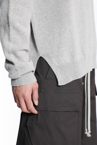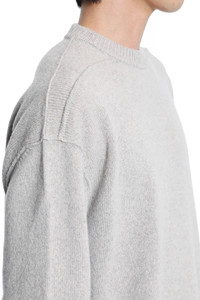 DESCRIPTION - Pearl - Boiled recylced cashmere knit - Crewneck - Horizontal shoulder seams - Dropped shoulders - Side splits - Back signature seam - Ribbed hem and cuffs - Hip length DETAILS - Made in: Italy - Composition: 97% Cashmere 3% Wool - Model code: RU02E1684WSBR 08 - Item ID: 9710582268246 SIZE & FIT Model wears size M Model Height 188 cm Chest 88 cm Waist 69 cm Hips 88 cm
