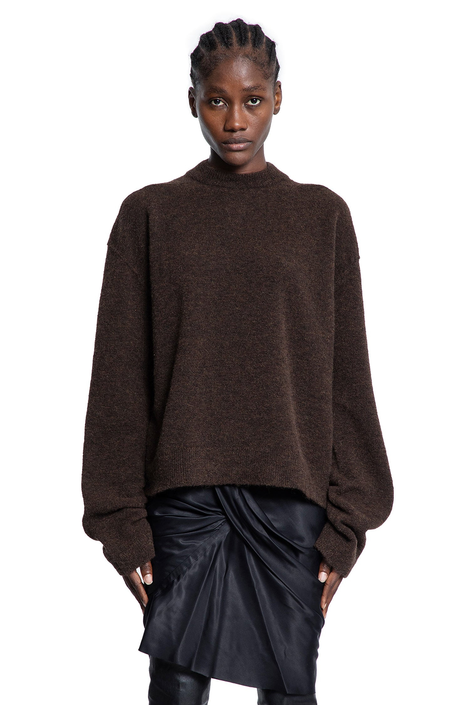 DESCRIPTION - Brown - Alpaca knit - Mock neck - Dropped shoulders - Back signature knit line - Ribbed hem and cuffs - Loose boxy fit DETAILS - Made in: Italy - Composition: 48% Alpaca 30% Nylon 20% Wool 2% Elastane - Model code: RP02E4655KWP 04 - Item ID: 9668727996758 SIZE & FIT Model wears size S Model Height 176 cm Bust 77 cm Waist 60 cm Hips 87 cm