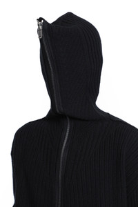 DESCRIPTION - Black - Heavy wool fisherman knit - Fixed hood with gimp mask - Full-length zip closure - Back signature seam - Ribbed hem - Hood can be zipped completely over the face DETAILS - Made in: Italy - Composition: 100% Wool - Model code: RU02E1647KWV 09 - Item ID: 9710581678422 SIZE & FIT Model wears size M Model Height 188 cm Chest 88 cm Waist 69 cm Hips 88 cm