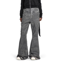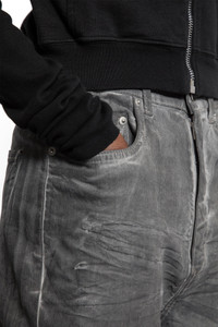 DESCRIPTION - Darkdust - Overdyed foil stretch denim - High-waisted - Belt holes - Button and zip closure - 6 pockets - Floor length bootcut DETAILS - Made in: Italy - Composition: 90% Cotton 7% Polyester 3% Rubber - Model code: DS02E7311SCF 78 - Item ID: 9747956891990
