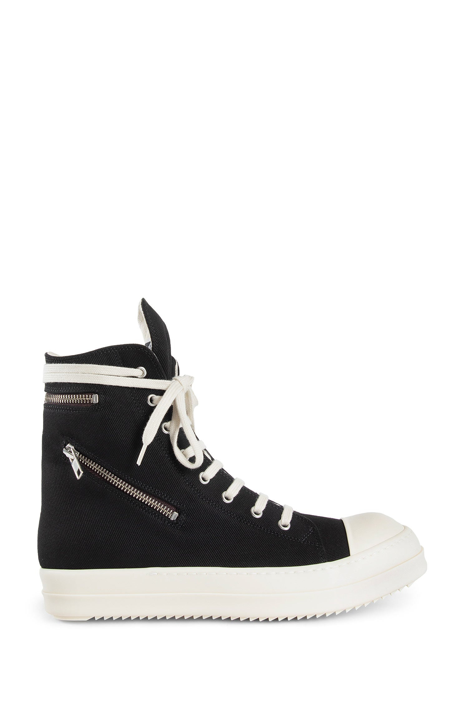 DESCRIPTION - Black - 13oz overdyed denim - High-top - Lace closure - Side zip closure - Side signature eyelets - Back zipped split - Side zipped split - Rubber sole and toe cap DETAILS - Made in: Italy - Composition: 100% Cotton - Model code: DU02E7808DO 911 - Item ID: 9742627144022