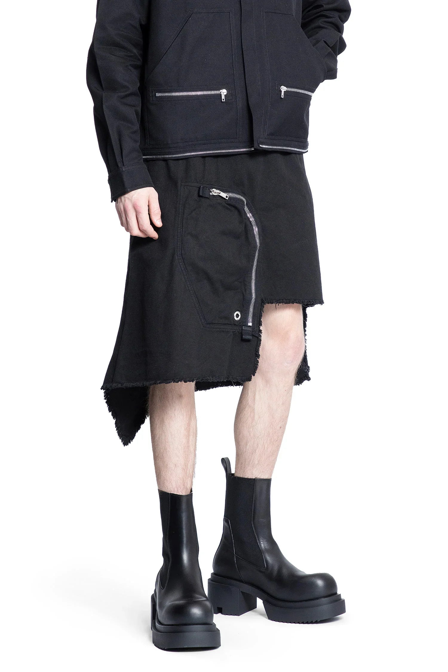 DESCRIPTION - Black - Cotton canvas - Elastic waistband with drawstrings - Front zippped bauhaus pocket - Side zipped pocket - Back flap pocket - Frayed raw-edge cut-out hem DETAILS - Made in: Italy - Composition: 100% Cotton - Model code: DU01E3384CVS 09 - Item ID: 9507077390678 SIZE & FIT Model wears size S Model Height 186 cm Chest 88 cm Waist 72 cm Hips 92 cm