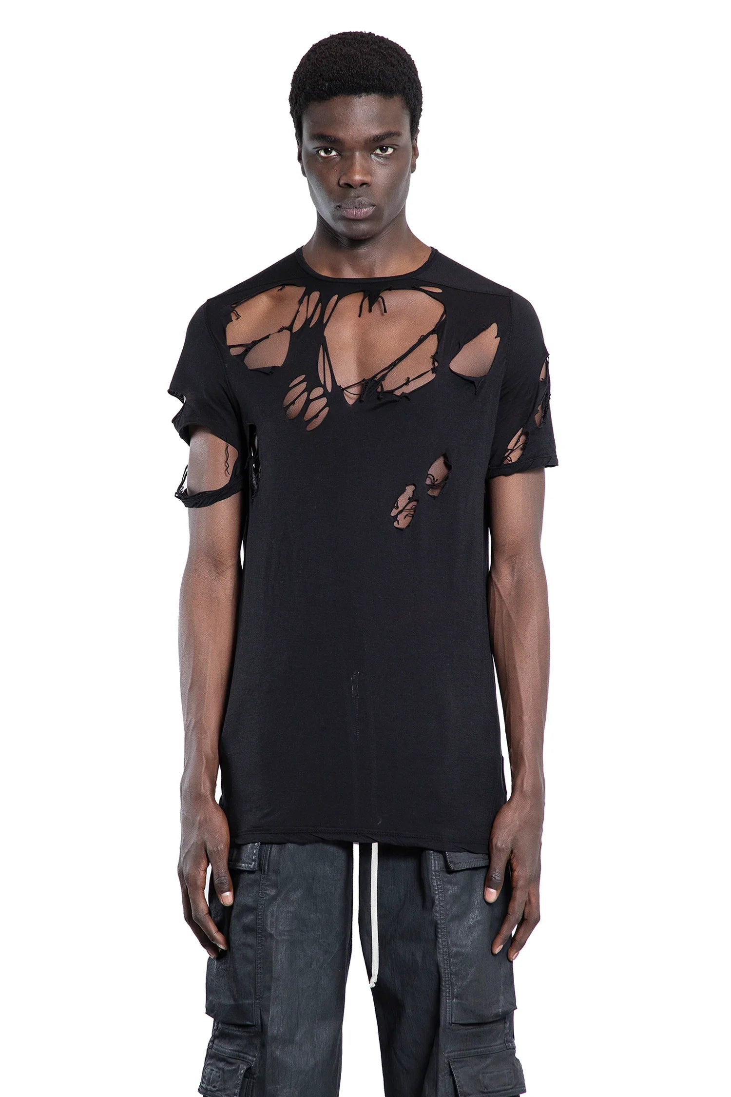 DESCRIPTION - Black - Cotton gauze jersey - Round neck - Horizontal level shoulder seams - Dropped shoulders - Short sleeves - Back signature seam - Slim fit DETAILS - Made in: Italy - Composition: 100% Cotton - Model code: DU01E3250BHDSD 09 - Item ID: 9460287537494 SIZE & FIT Model wears size S Model Height 190 cm Chest 87 cm Waist 73 cm Hips 88 cm