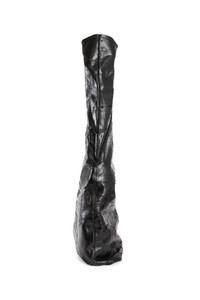 DESCRIPTION - black - rubberised cotton - knee height - floor length additional layer falling from an asymmetric seam line. - rubber sole and toe cap DETAILS - Made in: Italy - Composition: 91% Cotton 6% Elastomultiester 3% Rubber - Model code: DS02D2815BMC 911 - Item ID: 9147432960342