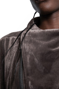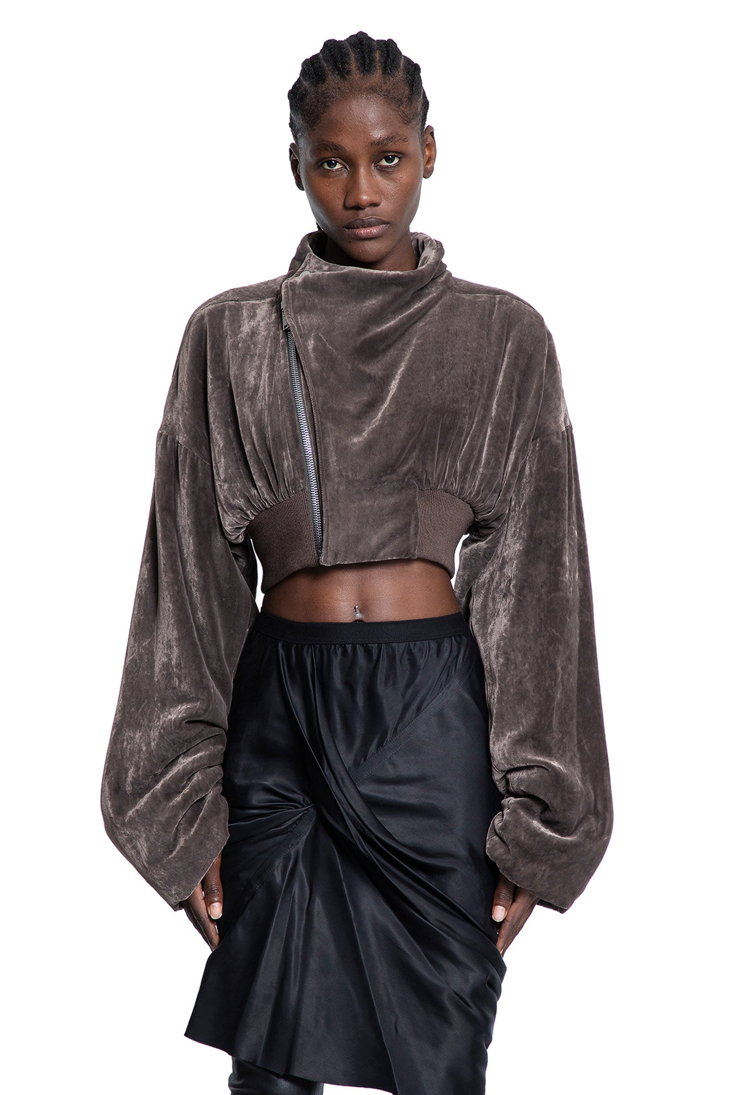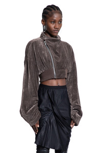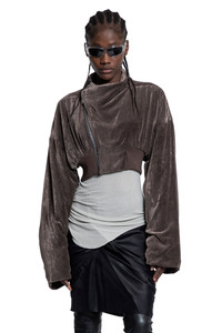 DESCRIPTION - Darkdust - Washed velvet - Cowl neck - Asymmetric zip closure - Dropped shoulders - Back press stud details - Ruched gathering - Ribbed hem and cuffs - Cropped hem DETAILS - Made in: Italy - Composition: 82% Viscose 18% Silk - Model code: RP02E4740V 78 - Item ID: 9668728422742 SIZE & FIT Model wears size 40 Model Height 176 cm Bust 77 cm Waist 60 cm Hips 87 cm