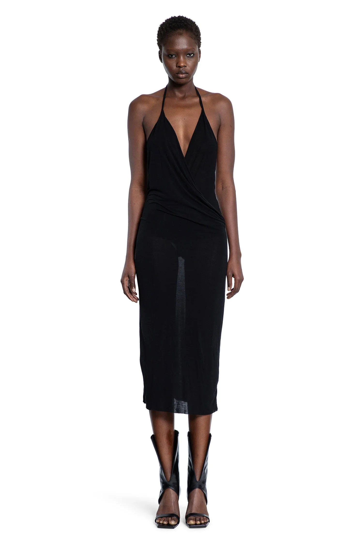 DESCRIPTION - Black - Viscose silk jersey - V-neck - Halterneck - Side ruched gathering - Sleeveless - Open back - Raw-edge hem - Fitted DETAILS - Made in: Italy - Composition: 88% Viscose 12% Silk - Model code: RP01E7552JS 09 - Item ID: 9361038180694