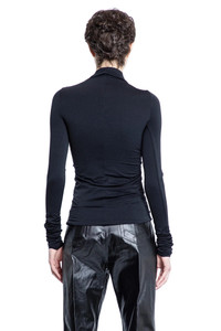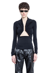 DESCRIPTION - Black - Nylon stretch jersey - Front boned geometric cut-out ruched gathering - Long sleeves - Fitted DETAILS - Made in: Italy - Composition: 91% Polyamide 9% Elastane - Model code: RP01E7222JN 09 - Item ID: 9349335449942 SIZE & FIT Model wears size 40 Model Height 178 cm Bust 85 cm Waist 73 cm Hips 92 cm