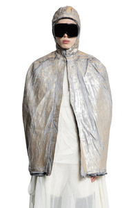 DESCRIPTION - Runway style - Gold - 13 oz megacrust japanese denim - Overdyed - Cracked hand-pressed gold foil - Fixed hood - High-neck with hook closure - Open front - 2 internal zipped pockets - Internal lining - Please note that the foil application is irregular and has peeled off and cracked and will continue to do so with wear and abrasion. This is a characteristic of the treatment and is a desired visual aspect which adds uniqueness to each piece. DETAILS - Made in: Italy - Composition: 100% Cotton - Model code: RR01E5701GMC 02 - Item ID: 9527233315158
