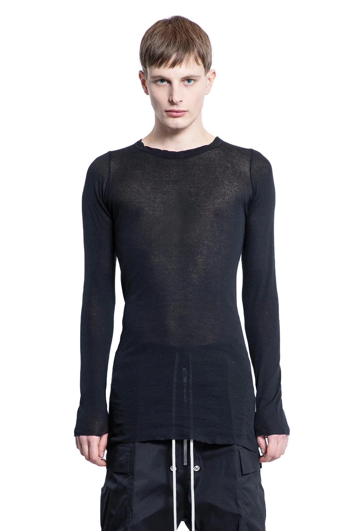 DESCRIPTION - Black - Mini rib jersey - Round neck - Long sleeves - Back signature seam - Raw-edge hem and cuffs - Fitted DETAILS - Made in: Italy - Composition: 100% Cotton - Model code: RU01E5250MR 09 - Item ID: 9361040081238 SIZE & FIT Model wears size M Model Height 187 cm Chest 90 cm Waist 73 cm Hips 92 cm