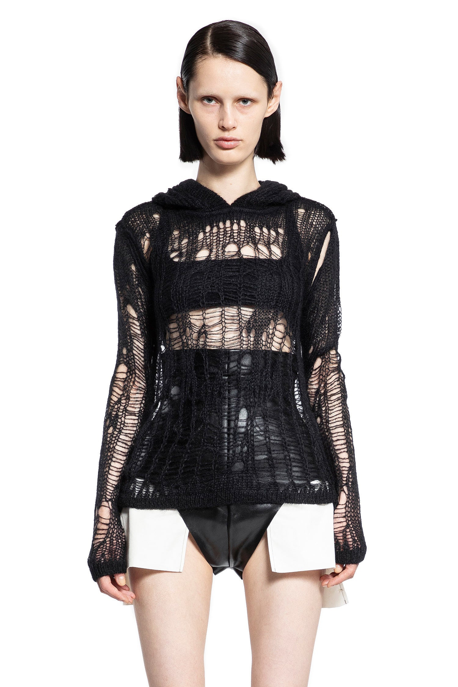 DESCRIPTION - black - net knit - fixed hood - dropped shoulders - ribbe hem and cuffs DETAILS - Made in: Italy - Composition: 50% Nylon 46% Mohair 4% Wool - Model code: RP02D3600KNETMH 09 - Item ID: 8940372623702 SIZE & FIT Model wears size S Model Height 178 cm Bust 78 cm Waist 59 cm Hips 88 cm