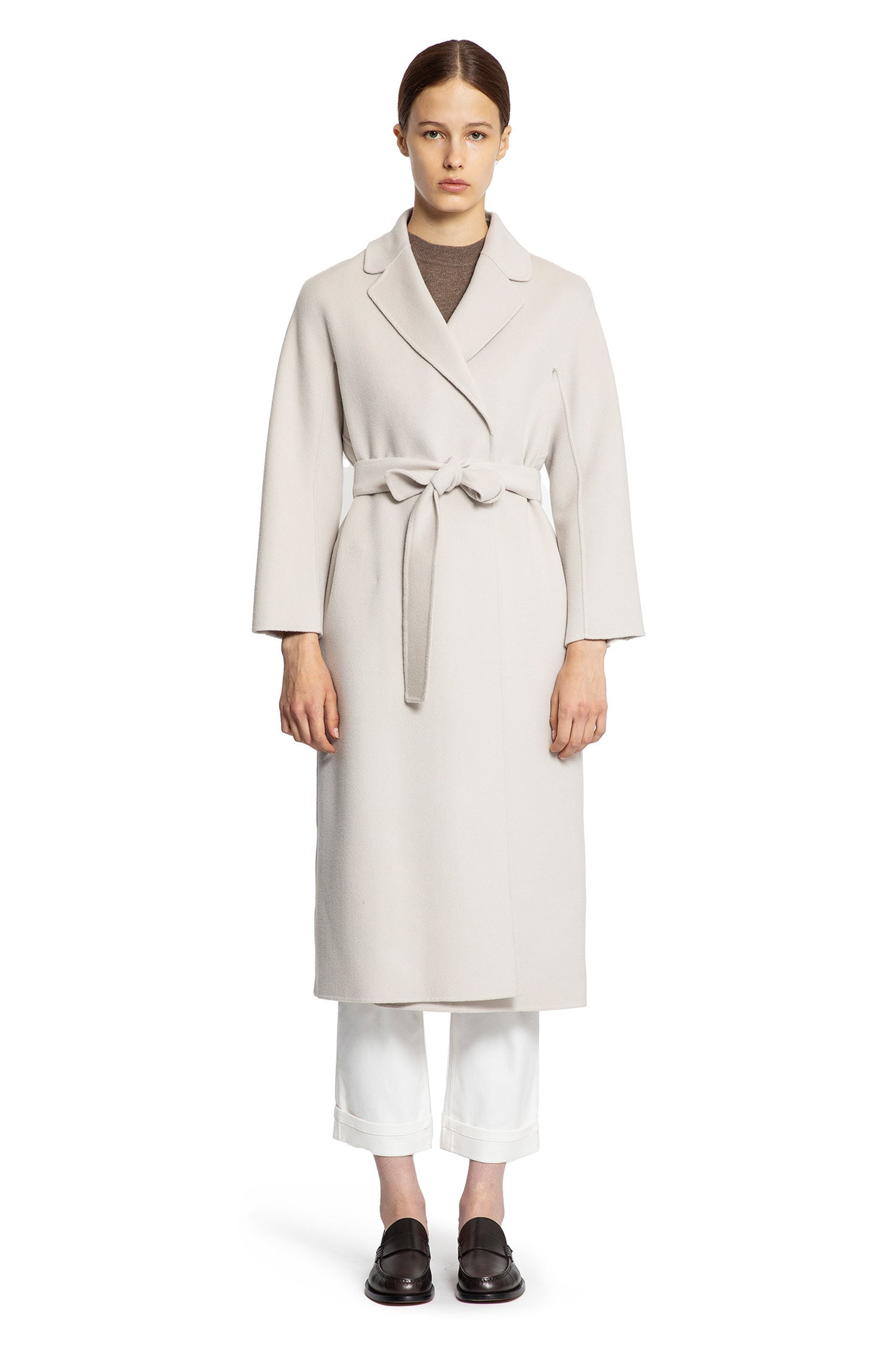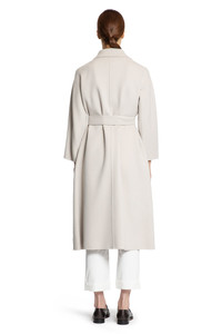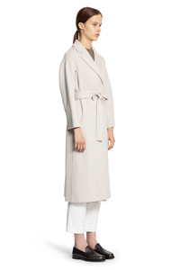 DESCRIPTION - Ecru - Double-faced pure wool broadcloth - Notch lapels - Self-tie wrap-around belt - Side pockets - Kimono sleeves - Unlined - Slightly flared cut - Straight fit DETAILS - Made in: Italy - Composition: 100% Wool - Model code: 2529016081600 031 - Item ID: 9719298195798 SIZE & FIT Model wears size 38 Model Height 178 cm Bust 84 cm Waist 60 cm Hips 88 cm