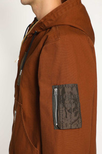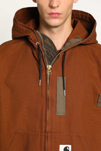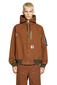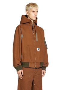 DESCRIPTION - In collaboration with carhartt wip - Dark beige - Cotton canvas - Hood with drawstrings - Zip closure - Webbing and press stud chest patches - Side pockets - Sleeve zipped pocket - Ribbed hem and cuffs - Relaxed boxy fit DETAILS - Made in: Japan - Composition: 100% Cotton - Model code: 2503859M 642 - Item ID: 9821425697110