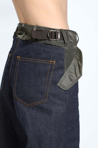 DESCRIPTION - Multicolor - Blue/khaki green - Nylon and denim - Belt holes - Button and zip closure - Side press stud flap pockets - Back buckled waist straps - Straight leg DETAILS - Made in: Japan - Composition: 100% Cotton 100% Nylon - Model code: 2507965 489 - Item ID: 9765180703062