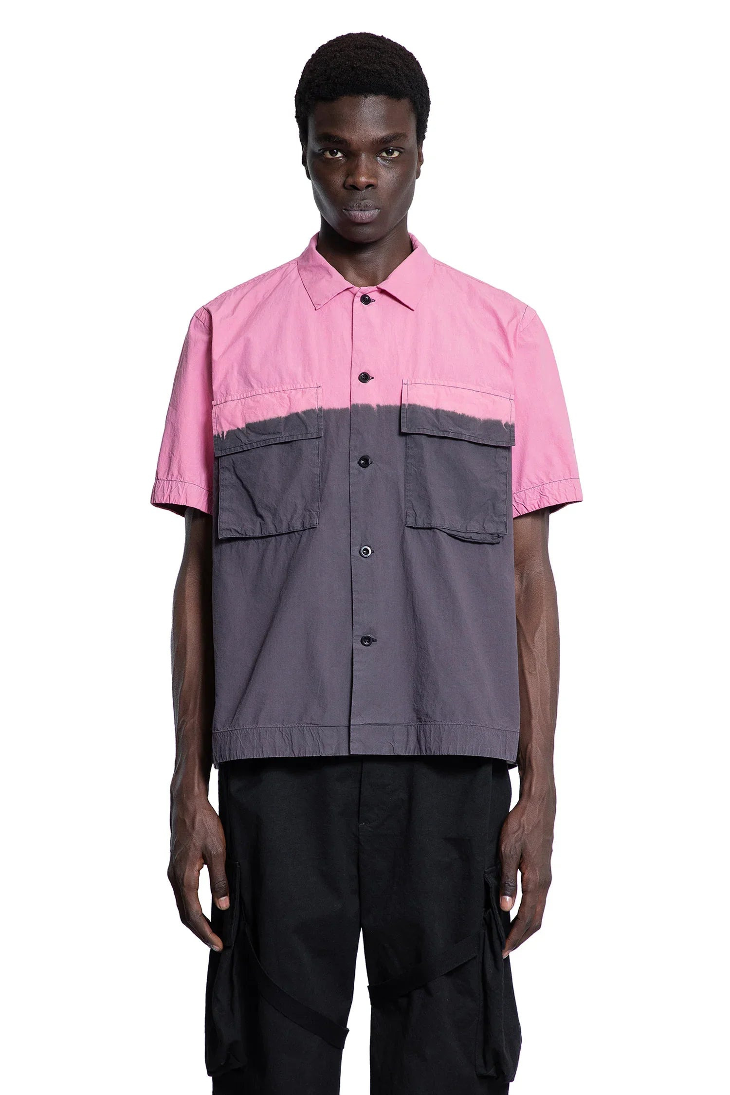 DESCRIPTION - Multicolor - Pink/grey - Cotton canvas - Garment dyed - Classic collar - Button closure - Chest flap pockets - Dropped shoulders - Short sleeves - Back pleats - Boxy fit DETAILS - Made in: Japan - Composition: 100% Cotton - Model code: 2503670M 301 - Item ID: 9486128873814 SIZE & FIT Model wears size 3 Model Height 189 cm Chest 88 cm Waist 69 cm Hips 88 cm