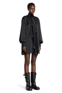 DESCRIPTION - Black - Satin - Buttoned high-neck - Draped scarf panel - Dropped shoulders - Long puffed sleeves - Buttoned cuffs DETAILS - Made in: Japan - Composition: 100% Polyester - Model code: 2507975 001 - Item ID: 9706229858646 SIZE & FIT Model wears size 2 Model Height 180 cm Bust 77 cm Waist 57 cm Hips 97 cm