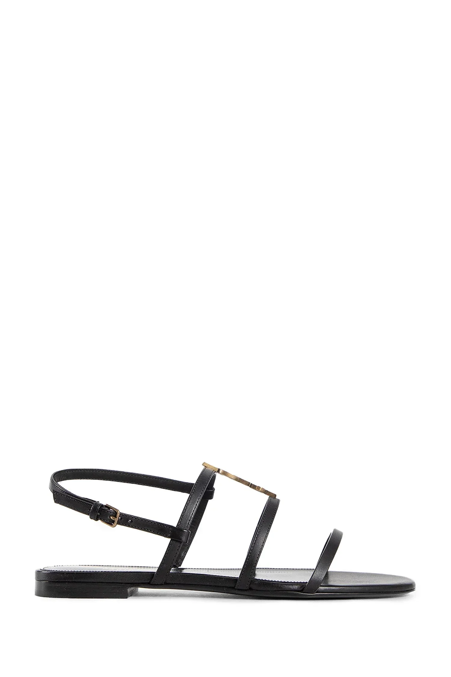 cassandra flat sandals in smooth leather with gold-tone monogram