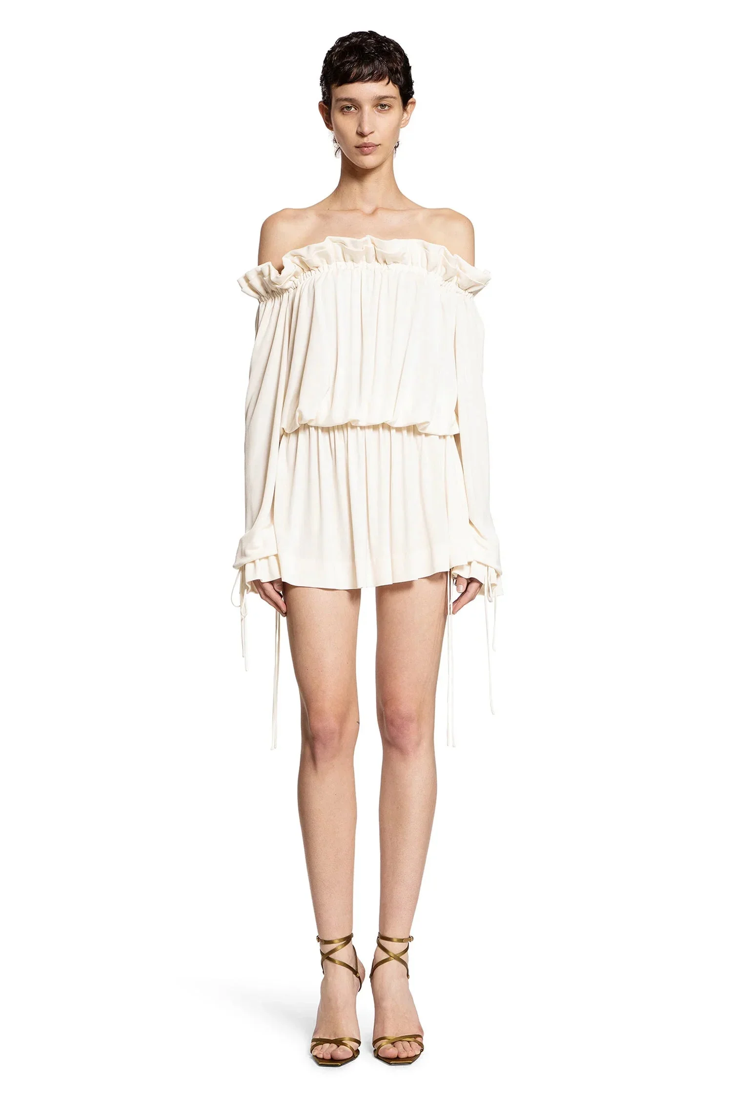 Gathered Mini Dress In Viscose Satin Crêpe