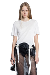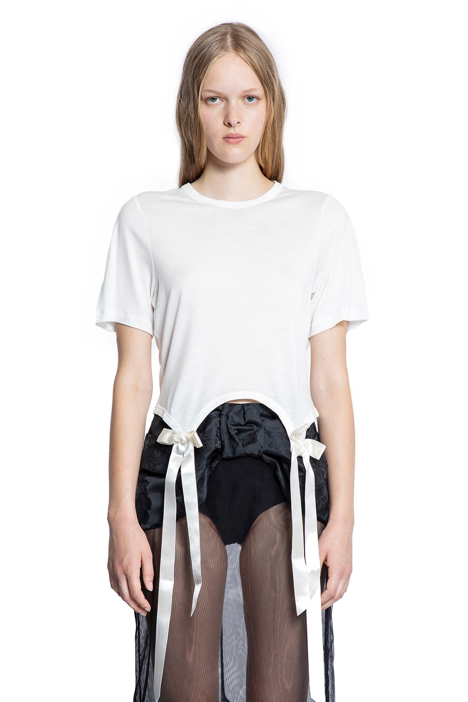 DESCRIPTION - Ivory - Soft fine lyocell jersey - Round neck - Short sleeves - Hem with satin bows - Cropped hem - Fitted DETAILS - Made in: Portugal - Composition: 100% Lyocell Satin: 100% Polyester - Model code: 52230571 IVR - Item ID: 9710053327190